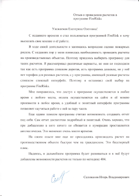 В данном разделе мы собрали лишь некоторые отзывы о программе для расчета риска FireRisks.